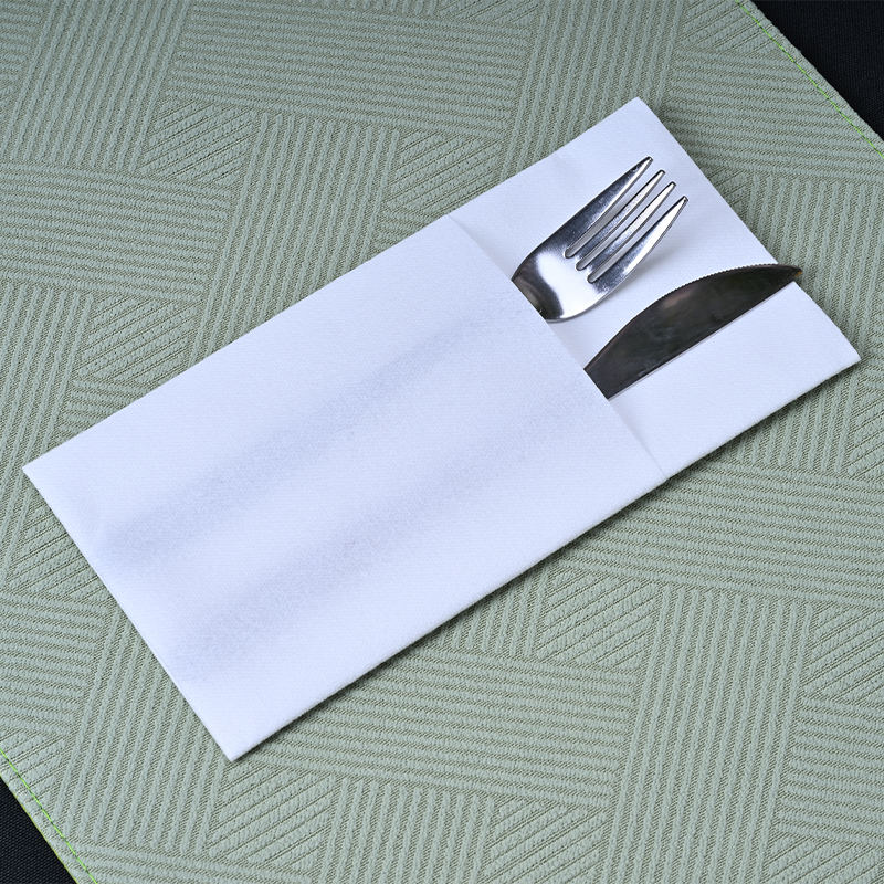 40x40 White Airlaid Servins do dyspozycji z kieszenią na sztućce SJ1103